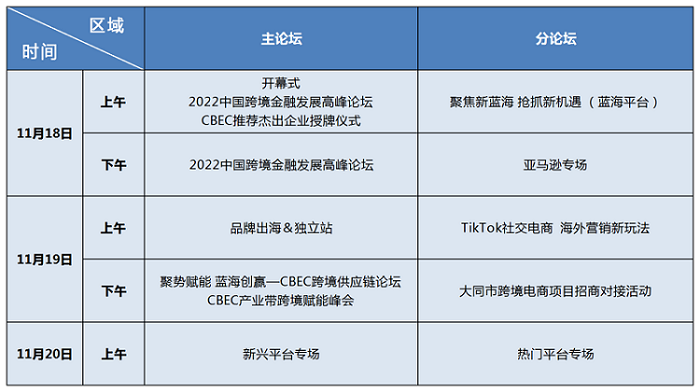 展会同期将举办多场跨境论坛,分别从金融、供应链、平台、独立站、运营等多方面与您一起探索跨境行业新生态,为国内跨境电商引领方向,为中国卖家指点迷津。TikTok、亚马逊等行业龙头企业将举办专场论坛。行业大咖汇聚于此,共话行业发展之路。