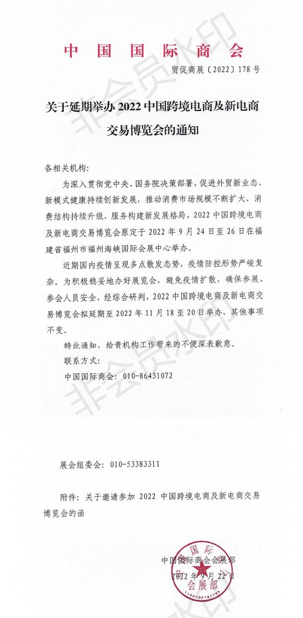【关于延期举办2022中国跨境电商及新电商交易博览会的通知文件】