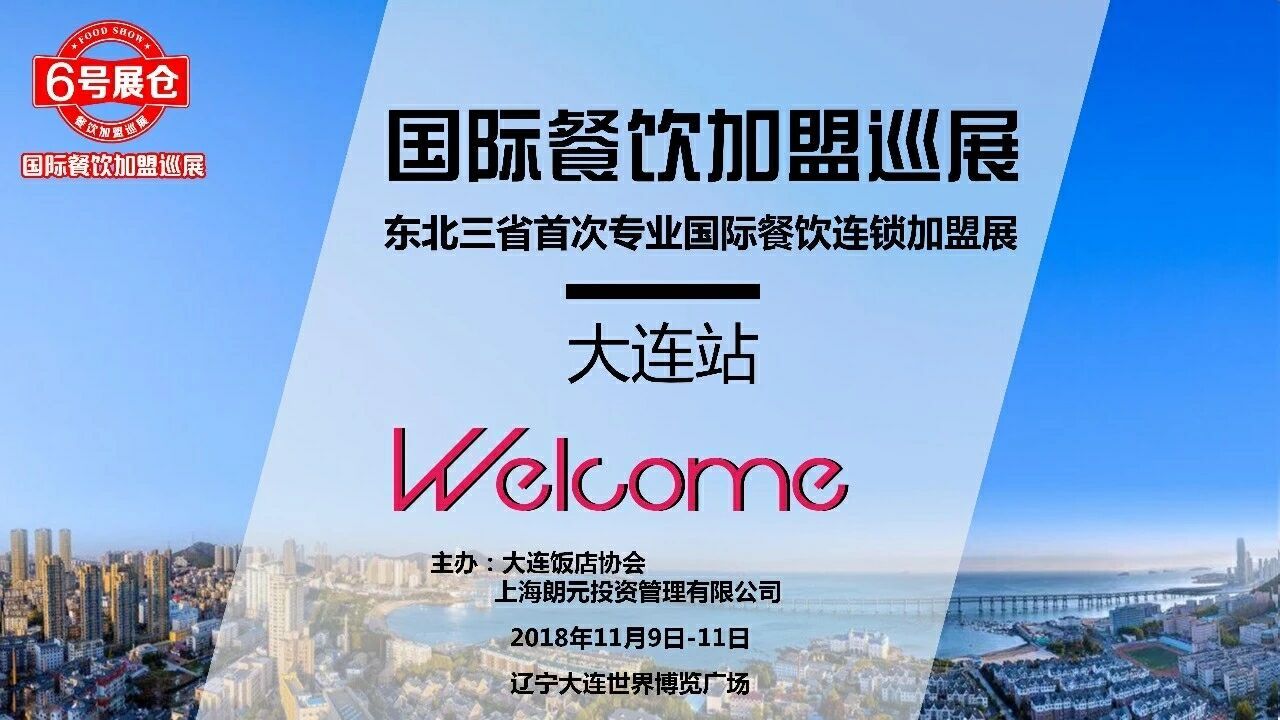 6号展仓全国餐饮加盟巡展2018年最后一站预计在11月9日在大连召开为期三天的展会。