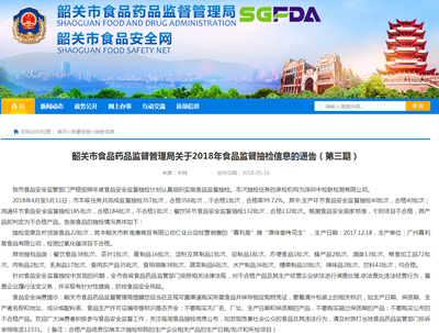 5月16日,韶关市食药监局官网发布2018年食品监督抽检信息称,韶关市食品安全监管部门严格按照年度食品安全监督抽检计划认真组织实施食品监督抽检。本次抽检任务的承检机构为深圳中检联检测有限公司。