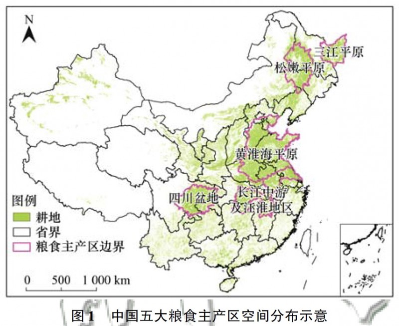 中国五大粮食主产区空间分布示意图。资料来源:中科院地理科学与资源研究所陆地表层格局与模拟重点实验室