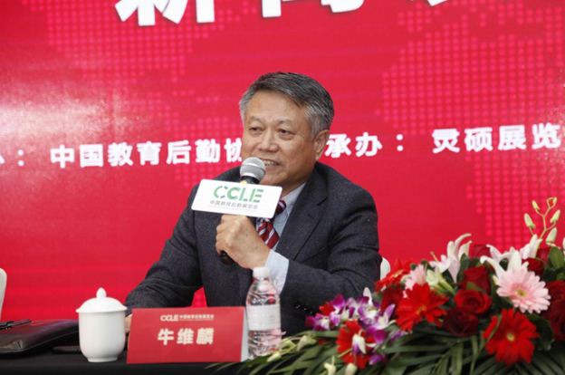 (中国教育后勤协会常务副会长兼秘书长牛维麟致辞)