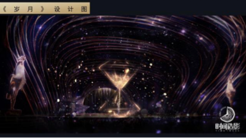 冰屏呈现巨大的沙漏,代表时间流逝的概念。在副歌部分利用冰屏透明的特性,画面擦除出一个心形的镂空,舞蹈演员在其后表演将舞蹈演员与视觉环节融为一体,营造画中人的概念,将冰屏特点完美呈现。