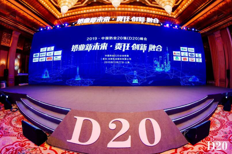 11月27日,2019中国奶业20强(D20)峰会在上海召开。D20即中国奶业的20强企业联盟,由中国奶业协会于2015年成立。2019年的第四届大会以“奶业新未来:责任、创新、融合”为主题,农业农村部于康震副部长在会上发表主旨演讲,农业农村部总畜牧师马有祥出席。会上还发布了《2019中国奶业质量报告》。