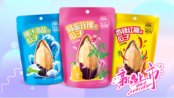 从一开始的徽记煮瓜子,定位“干净不脏手,久吃不上火”,徽记坚果炒货系列一上市即赢得消费者的青睐。2019年,徽记煮瓜子创新升级,推出蜂蜜玫瑰味、香辣红糖味、椰汁海盐味瓜子,为瓜子品类的口味创新打开了想象空间。2019年,把握健康潮流,徽记食品创新推出非油炸“气流膨化”坚果米酥系列,一经推出就获得了消费者的一致好评。