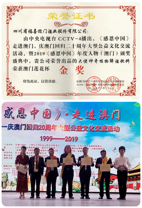 凭借前期市场铺垫,良好的口碑和解酒、醒酒效果,大佬神奇植物解酒饮料一经推出,大受好评和欢迎,喜获“澳门莲花杯金奖”。