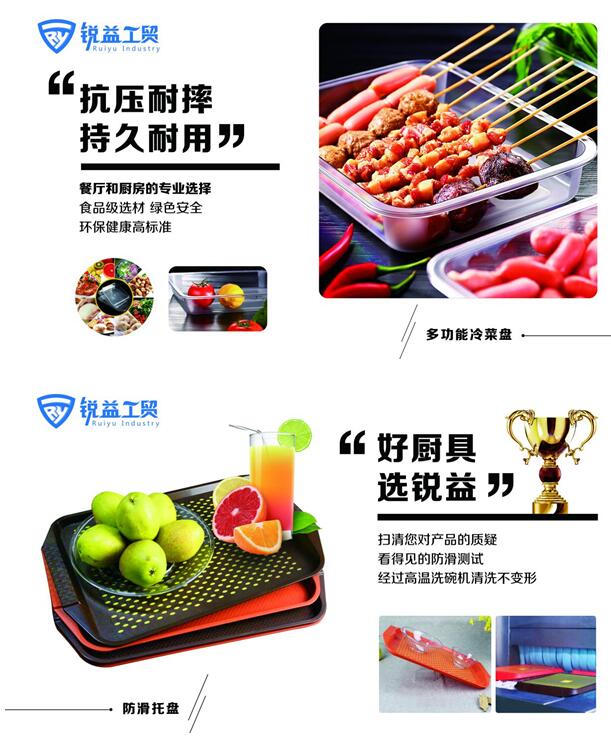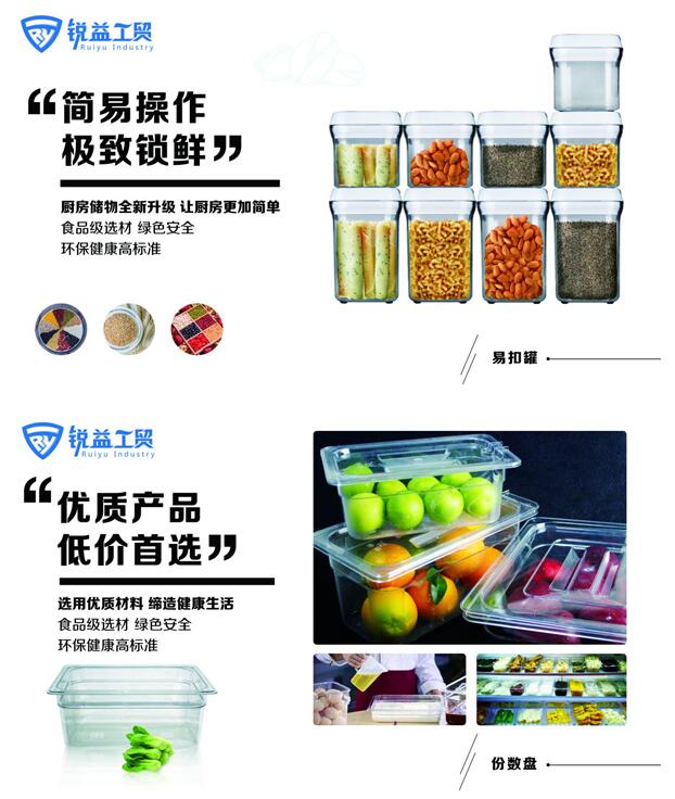 展品范围:易扣罐、份数盘、多功能冷菜盘、防滑托盘、洗菜筐、厨房标识盒等。