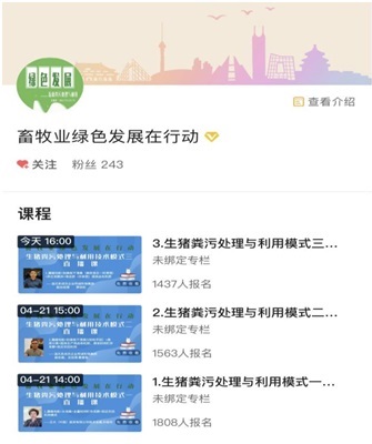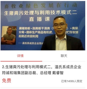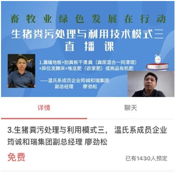 4月21日,首期生猪粪污处理与利用技术专题培训成功举办,以促进农用有机肥就近就地还田利用为重点,正大(中国)投资有限公司、温氏筠诚和瑞集团等养殖和环保企业负责人分别介绍了生猪粪污资源化利用全链条技术。直播期间观众踊跃提问,专家耐心解答,在线交流互动效果良好。畜牧技术推广机构人员、养殖从业者等近5000人在线收看了网上课程。