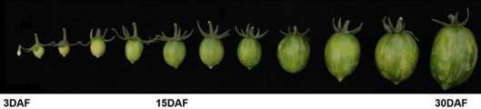 条斑番茄果实在不同发育阶段的表型。华中农大供图