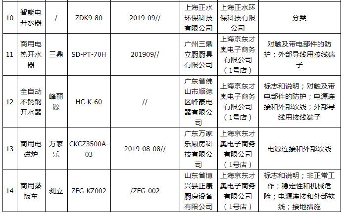 上海监管局称,本次抽查发现涉及安全性能指标的项目有13批次产品不符合标准要求,涉及的不合格项目为:对触及带电部件的防护、输入功率和电流、非正常工作、稳定性和机械危险、接地措施;另有13批次产品不符合使用性能指标,涉及的不合格项目为:分类、标志和说明、结构、电源连接和外部软线、外部导线用接线端子。