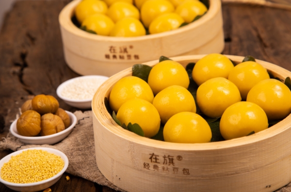 在旗经典黏豆包,黏豆包是满族传统主食,具有原生态、绿色、零添加的特点,黏豆包制作技艺现已经被列为非物质文化遗产。由于工艺要求严格,每一环节都要精心制作、严格把关,产品成型后才能呈现出外观圆润、色泽鲜亮,口感软糯、米香浓郁的黏豆包。遵循古法工艺、配方,采用独特的发酵工艺;严格把控原料选材,真材实料,粗粮细作;无色素香精防腐剂等添加剂。