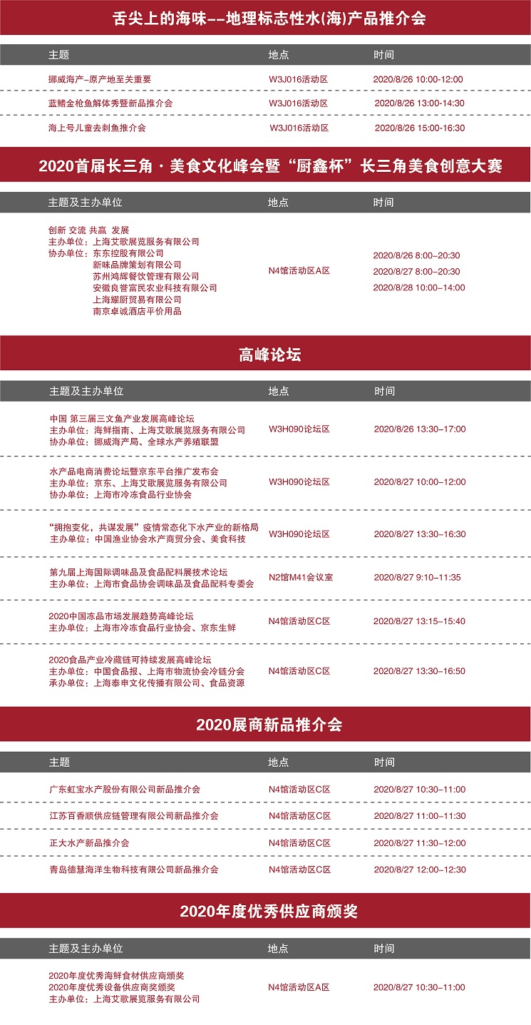 作为会晤水产领域贸易买家的专业交流平台, World Seafood Shanghai 一直是水产业内人士热烈关注的全球领先行业盛会,展会现场除产品集中展览展示外,主办方还联手各支持单位打造多场精彩纷呈的同期活动和聚焦行业热点的高峰论坛,与企业共同探讨行业当下最新市场话题及形势,共谋未来发展机遇。