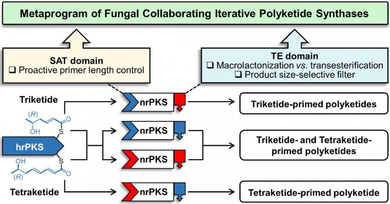 图 SAT和TE结构域根据自身内源和外源程序调控真菌聚酮天然产物的生物合成