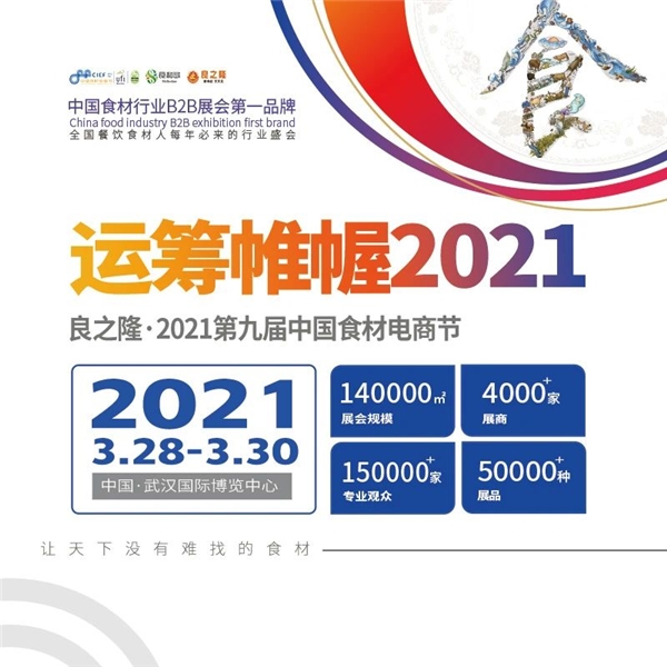 良之隆·2021第九届中国食材电商节(湖北武汉)将于2021年3月28——30日在中国·武汉国际博览中心盛大举行。