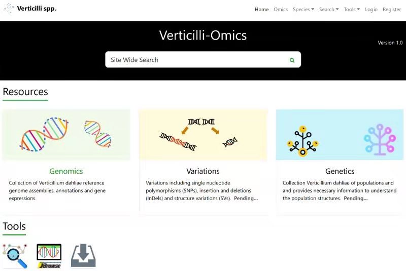近日,中国农业科学院植物保护研究所作物黄萎病研究团队与美国加州大学戴维斯分校联合牵头的“全球黄萎病菌基因组研究”计划取得重要进展,搭建国际上第一个作物黄萎病菌资源和基因组数据库(Verticilli-Omics)正式上线。用户可在该网站查阅收录的菌种资源信息、测序菌株基因组可视化展示、数据挖掘和分析等工作。