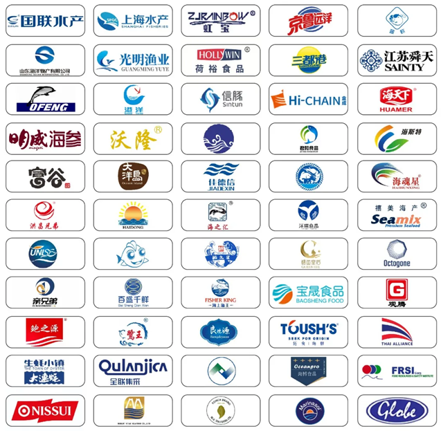 已经报名的部分参展商有:国联、上水集团、虹宝、蓬莱汇洋、蓝虾、山东海洋物产、光明渔业、荷裕、金盛、阔港、江苏舜天、上海欧枫、港洋、信豚、盒成、海天下、明威海参、参福元、珍品堂、北腾水产、汉隆、龙威、威海海纳、费澳德、富谷、大连大洋岛、华恩食品、海之汇、洋琪工贸、欧肽贡、裕丰源、鲔之星、鳗鱼皇后、百盛千鲜、海魂、宝晟、鲍之源、北海宏方、北海宏昌、祥鲜、广东泰联、生蚝小镇、全联集采 、双湖、佳德信、丹阳颐和、时代海洋、广东洲际、瑞驰、北洋佳美、日本水产、越南明发等。