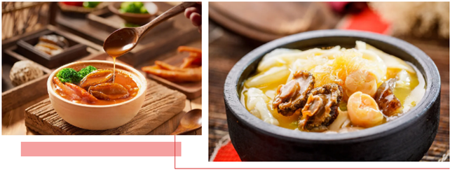 与此同时,伴随着近几年消费升级和百姓膳食品味的提高,滋补品“饮食化”趋势日益明显,“鲍参翅肚”类产品越来越受到普通百姓的欢迎,市场规模迅速扩大。各大海珍品企业通过不断探索和创新,逐步推出佛跳墙、捞饭、盆菜、浓汤等一系列平民滋补膳食产品,并通过把握当下消费升级的主流趋势——将原料类水产品深加工发展为食材化便捷的食品,围绕着“鲍参翅肚”研发了一系列调理类即食产品,以解决传统滋补繁琐方式和现代快生活需求的碰撞和局限,将“燕鲍翅参肚”这一传统滋补珍品融入大众消费市场,把营养、便利的新式养生模式推进千家万户。