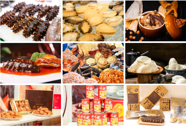 ◇ 高端滋补类食材衍生及系列产品:干贝、海马、鱼胶等干制品系列。