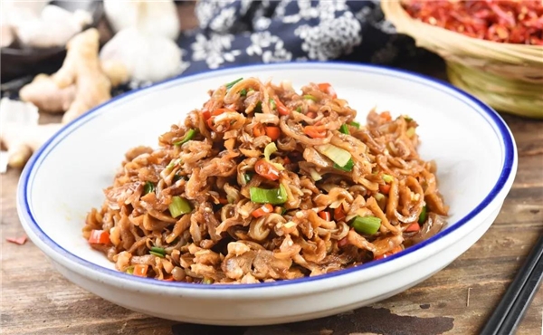 在口感上,香脆味浓,可口且又开胃下饭,这道菜是食掌柜首创,一直在被竞争对手模仿,但从未被超越。江南小炒主料有猪肚丝、脆骨丝,萝卜干,其中的萝卜干是来自安化-自己种植的人参小萝卜,味道脆嫩香甜。