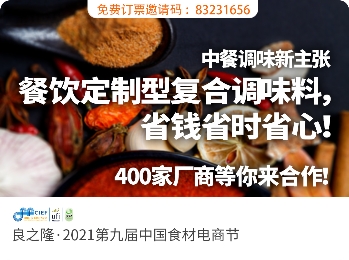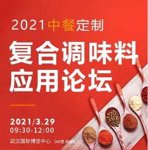 3月29日,2021中餐定制复合调味料应用论坛,将在武汉国际博览中心(A0馆活动区)举办,同期举办良之隆·2021第九届中国食材电商节,欢迎大家前来参展!另外,凭邀请码83231656,可领取价值200元展会门票。