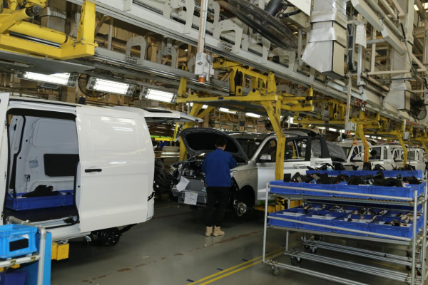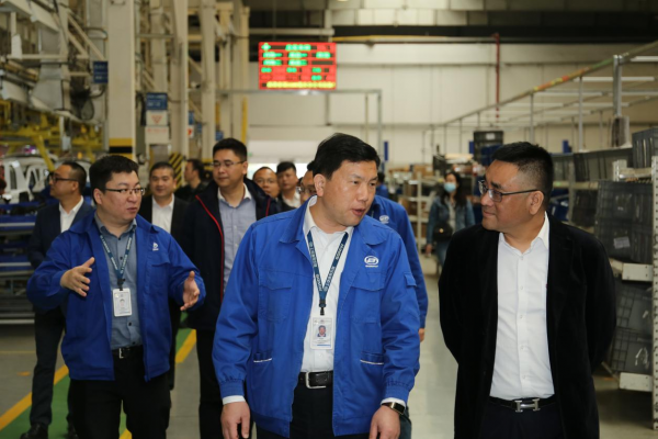 (伍子醉领导在五菱重庆分公司负责人陪同下参观生产现场)