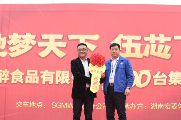 2021年3月18日下午2点18分,“驰梦天下·伍芯飞翔”湖南伍子醉食品有限公司与五菱汽车1000台集团车交车仪式在五菱重庆分公司盛大举行,湖南伍子醉食品有限公司集团总裁苏杰、湖南伍子醉食品有限公司西部战区总监李熹林、上汽通用五菱重庆分公司总经理黄春笋、上汽通用五菱重庆分公司整车工厂总监张海峰、上汽通用五菱汽车股份有限公司集团经理覃毅军等领导及数十家媒体记者共同见证了这一具有里程碑意义的重要时刻。