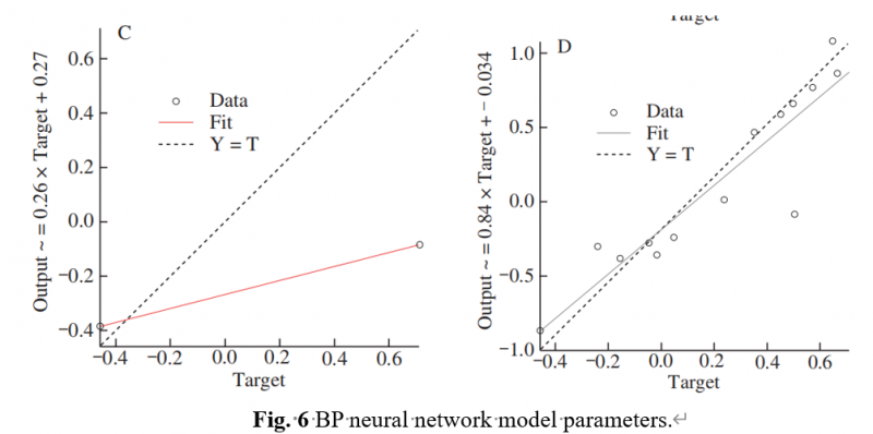 利用PLSR方法建立灵芝的谱效关系,结果分析发现,P7、P8、P13、P14、P17、P22、P23、P26、P28、P31、P32、P33、P41和P45与灵芝提取物激活RAW264.7细胞、增强免疫活性呈正相关;峰P3、P34、P39和P43与灵芝提取物增强免疫活性呈负相关。通过高分辨质谱法鉴定P14、P16、P18、P22、P24、P26、P28和P30为赤芝酸N、灵芝烯酸B、灵芝烯酸K、灵芝酸A、赤芝酸A、灵芝酸D、灵芝酸F和灵芝酸J。当样品的浓度相当于原药材200 μg/mL时,灵芝中同时存在激活和抑制RAW264.7细胞的化合物。以灵芝指纹图谱共有峰峰面积和免疫药效指标为样本训练BP神经网络,建立了灵芝谱效结合评价系统。所建BP网络模型相关系数R为0.98643,药效预测结果的误差均在理想的范围内。
