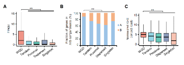 图1: 染色质互作参与全基因组重复基因的表达调控