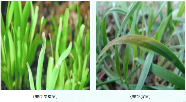 夏季韭菜易发生的病害主要有灰霉病、疫病、锈病等,可每隔10~15天喷1次50%硫磺1000倍液加50%多菌灵500倍液,或用50%速可灵、50%扑海因、70%代森锰锌可湿性粉剂等杀菌药交替使用进行防治。
