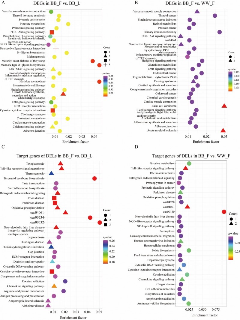 图 差异基因和差异lncRNA靶基因富集到的与绵羊下丘脑功能和繁殖过程相关的信号通路