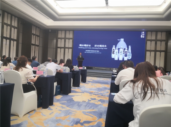 在健康饮水对接洽谈会上成都逸活泉匠食品饮料有限公司董事长张波携手集团品牌“EHO泉匠天然矿泉水”以全新升级后的崭新姿态、优良品质精彩亮相本次会议,并作为活动现场唯一矿泉水代表进行主题发言和品牌路演。