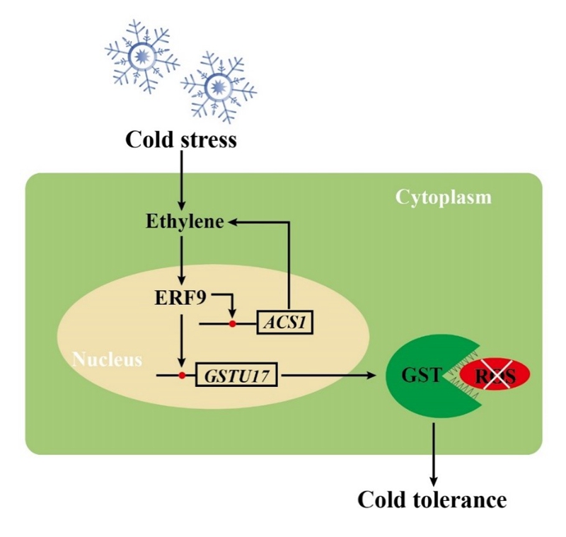 PtrERF9-PtrGSTU17/PtrACS1模块参与枳低温应答作用图(Zhang et al, Plant Biotechnol J, 2021)