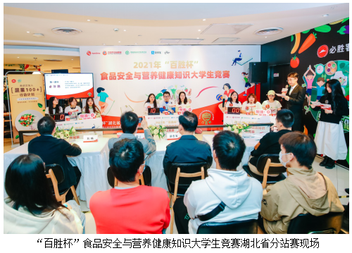 10月20日,2021年“百胜杯”食品安全与营养健康知识大学生竞赛湖北省分站赛在武汉必胜客“食品安全与营养健康”主题餐厅举行。来自华中农业大学、湖北工业大学、武汉轻工大学3所高校的食品科学专业同学们同场竞技、展开角逐。通过紧张地比拼,同学们用自己丰富扎实的食品安全和营养健康知识储备,给在场的嘉宾带来了一场精彩纷呈的比赛,活动现场到处洋溢着青春的活力。