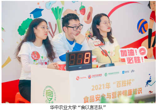 比赛招募期间,华中农业大学、湖北工业大学、武汉轻工大学开展了线上线下形式多样的赛事宣讲会,吸引众多同学踊跃报名,经过各学校组织的笔试环节,甄选出三名成绩优秀的同学代表本校参加“百胜杯”湖北省分站赛。华中农业大学的“食以言志队”、湖北工业大学的“湖工啥都队”以及武汉轻工大学的“轻工水上漂队”,“食”力开战,充分展现了各自的“食商”。