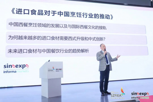 朱一帆先生身为中国西餐烹饪领军人物之一,本次演讲围绕中国西餐烹饪领域的发展以及如何与国际西餐文化接轨分享了他的观点和建议。更深层次的解释了为何现在越来越多的进口食材需要西式的升级和中式的创新,同时解析了未来中国餐饮行业进口食材的趋势。
