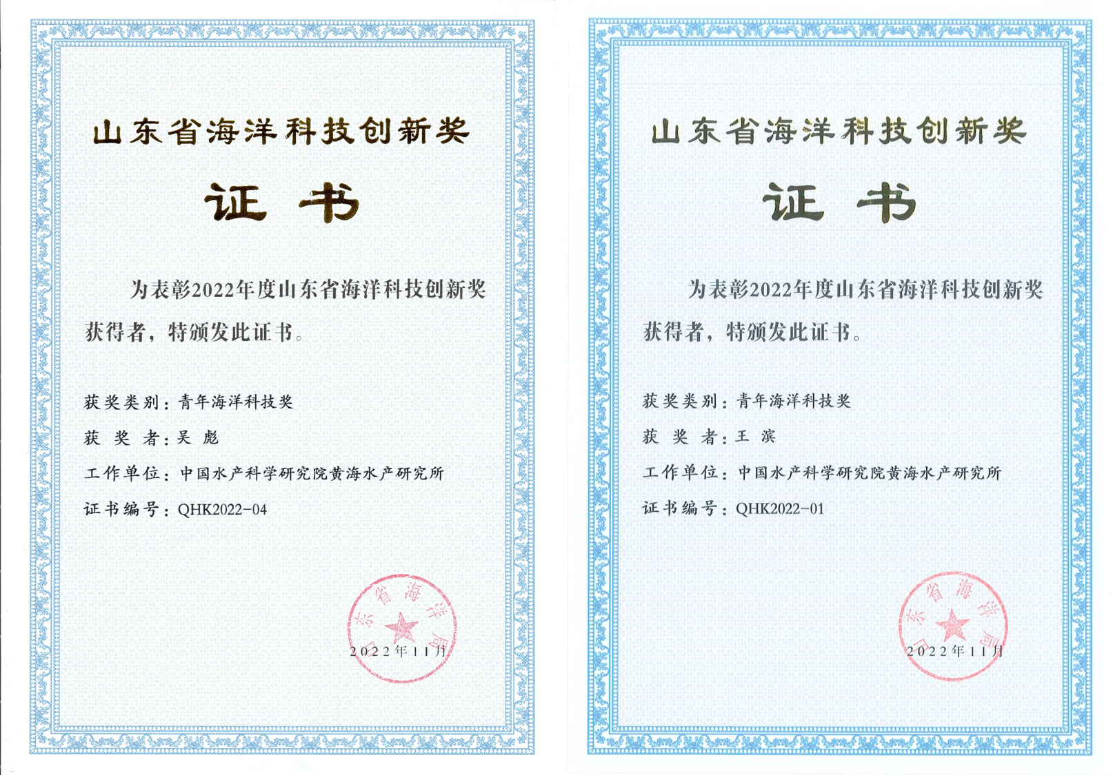 近日,山东省海洋科技创新奖奖励委员会发布了2022年度山东省海洋科技创新奖获奖成果的公告。中国水产科学研究院黄海水产研究所陈四清研究员等人申报的“绿鳍马面鲀高效规模化苗种繁育与养殖技术”和高亚平副研究员等人申报的“鳗草规模化人工培育与移植技术的研究与应用”两个项目荣获一等奖,我所均为第一完成单位;吴彪研究员和王滨副研究员两位同志荣获青年海洋科技奖。