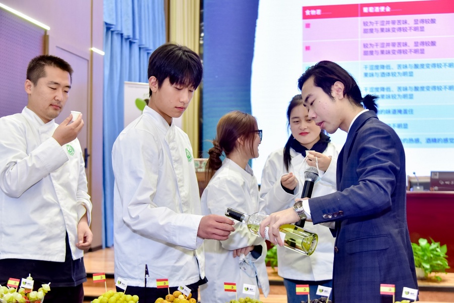 本次成都大师班的亮点之一是侍酒师课程,由专业侍酒师担任讲师,该侍酒师深谙葡萄酒和其他饮品与不同类型和口味的食物相得益彰的魔力,并与学员们分享了用各种酒类搭配西班牙橄榄的最佳方法。