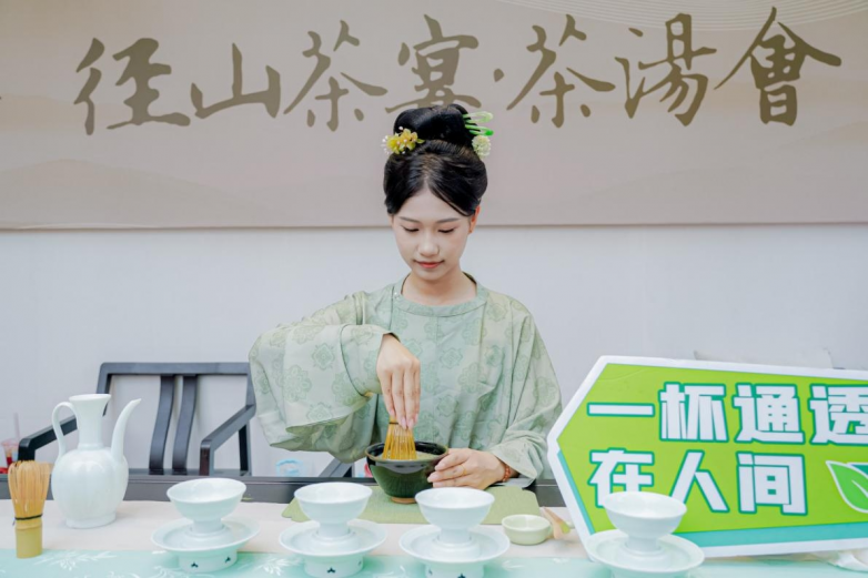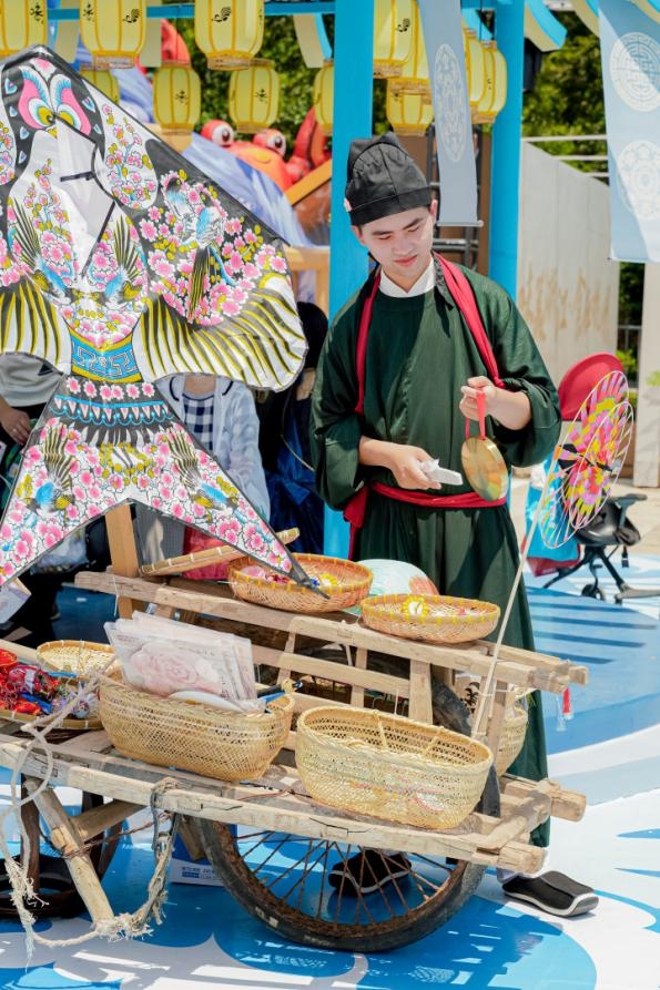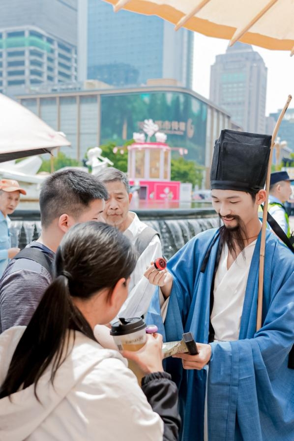 美食相逢,风味入画。现场南宋NPC角色互动、古风巡游、古风歌舞表演等50余场演艺活动轮番上演,让人一秒入宋。参与者不仅能和“苏东坡”对一句飞花令、和“卖货郎”买一只燕子风筝,还能近距离观赏古装演绎“宋人四雅”焚香、点茶、插花、挂画,让游客在花式互动中感受一场活色生香的视觉赏味与文化宴席。