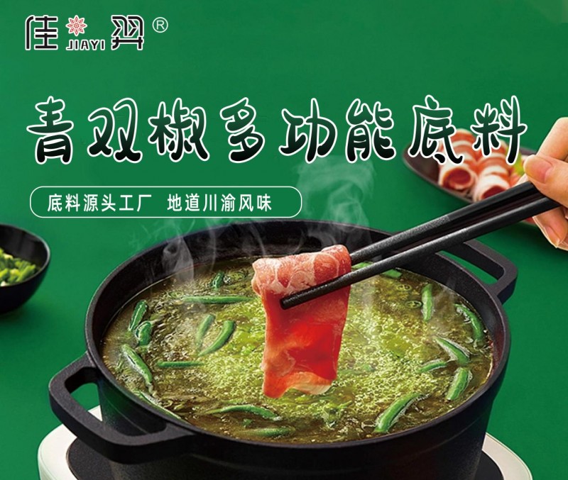 尤为值得一提的是,重庆佳羿食品还将首次亮相其C端新品——青双椒多功能底料。这款产品巧妙融合了青椒与青花椒的清新香气与川渝地区的麻辣特色,口感独特,令人回味无穷。青双椒多功能底料不仅适用于火锅,还能轻松驾驭青椒鸡、青椒鱼、青椒酱等多种烹饪方式,真正实现了“一料多用”,为消费者带来全新的美食体验。
