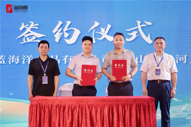 在此次海南鲷品牌专题推介会现场,邀请到了来自海南6家海南鲷优秀的养殖深加工企业的产品展示让参会代表眼前一亮,纷纷驻足展台前品尝交流、洽谈合作。部分当地企业现场直接下单,达成采购意向。海南翔泰渔业股份有限公司和山西博凡酒馆、海南勤富食品股份有限公司和中国百姓渔村餐饮集团、海南蔚蓝海洋食品有限公司和山西黄河人家现场签约。山西省商务厅消费促进处二级调研员曹欣、海南省商务厅对外贸易处二级调研员何声贤见证两地企业签约合作成功。