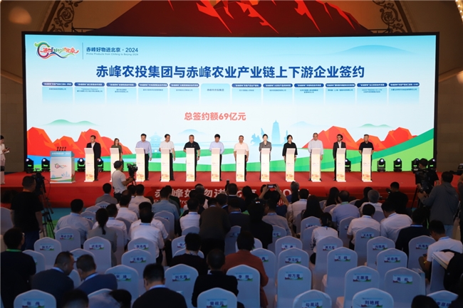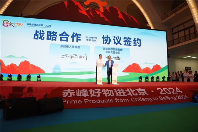 9月25日,“赤峰好物进北京”活动在北京展览馆隆重开幕,开幕式现场发布了“赤诚峰味”品牌升级计划、上线京东商城“赤诚峰味”旗舰店、发售“京蒙情·赤峰旅游一卡通”及发布京赤旅游精品路线、推介赤峰市招商资源和京蒙(亦庄·赤峰)科创产业园,一系列诚意满满的举措,给予北京市民选择赤峰优质农畜产品的便利渠道和到赤峰旅游的诸多优惠福利。现场还进行了农畜产品“六进”集采集供、京赤文旅战略合作、招商引资等重点项目签约仪式。签约总额近300亿元,涉及新能源、机械制造、矿产开发、农畜产品精深加工、文化旅游等多个领域148个项目。