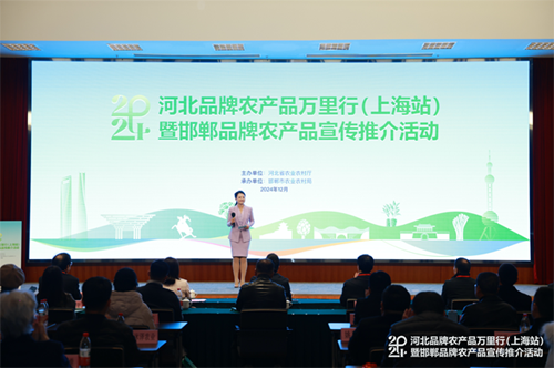 12月13日,河北品牌农产品万里行(上海站)暨邯郸品牌农产品宣传推介活动在上海西郊国际农产品交易中心成功举办。本次活动由河北省农业农村厅主办,邯郸市农业农村局承办,中国食品报社品牌农业中心和上海西郊国际农产品发展有限公司作为支持单位。活动旨在通过搭建展示、交流、合作的平台,推广河北农业品牌,拓宽河北品牌农产品销售渠道,推动冀沪两地合作。河北省农业品牌建设中心主任王琰琨,邯郸市农业农村局副局长梁志霞、邯郸市供销社党组副书记、监事会主任陈永朝,邢台市农业农村局二级调研员张科慧,上海农展企业集团有限公司总裁庞志荣,上海农展企业集团有限公司副总裁赵振东,上海市河北商会常务副会长、秘书长许铁圈,上海邯郸商会常务副会长张宏亮等领导嘉宾近200人参会。