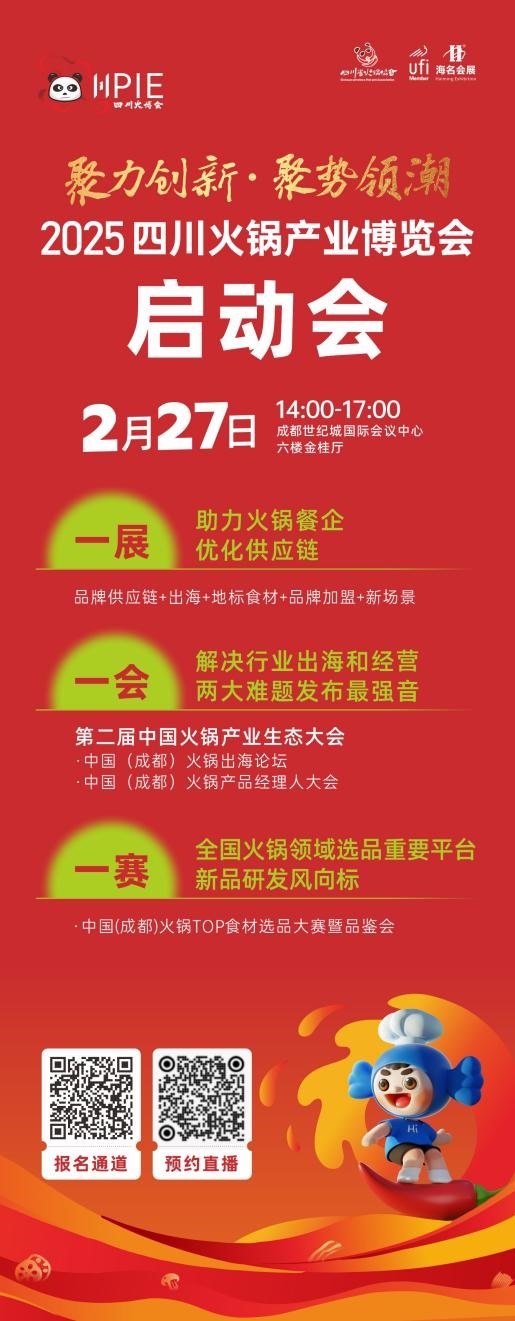 2025四川火锅产业博览会启动会将于2025年2月27日14:00-17:00在成都世纪城国际会议中心6楼【金桂厅】隆重举办!