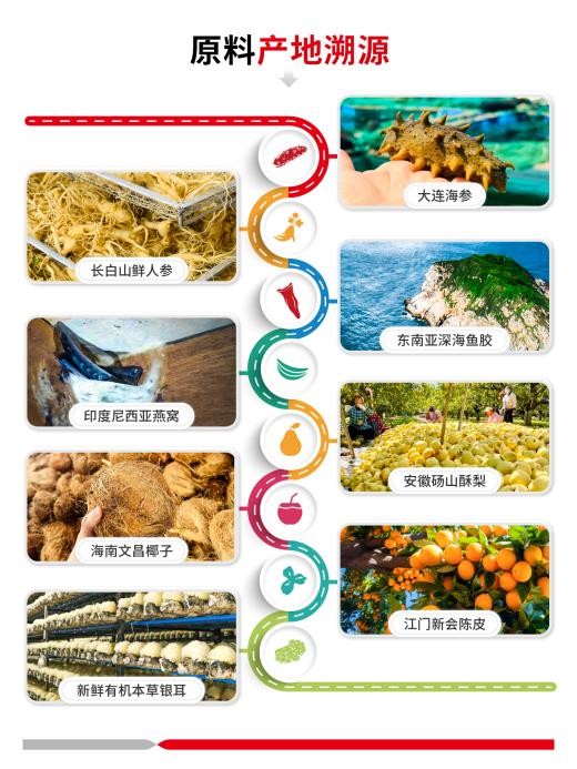充分利用好国家地理标志产品“金字招牌”,深挖道地药材、五谷杂粮、家禽畜牧等优质农产品,深加工为“方便、好吃、有效、不贵”的即食型滋补品,通过配方研发、锁鲜生产技术,成功实现鲜耳烤梨、陈皮红豆沙等产品风味还原度96.8%以上,发挥地理标志产品带动乡村产业发展的点金之力。