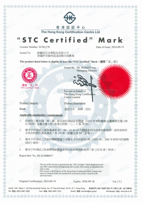 新疆昆托米业股份有限公司自获得“STC 香港优质正印”认证证书以来,在产品经营的各个方面都发生了显著变化,市场竞争力得到不断提升,未来发展前景广阔。
