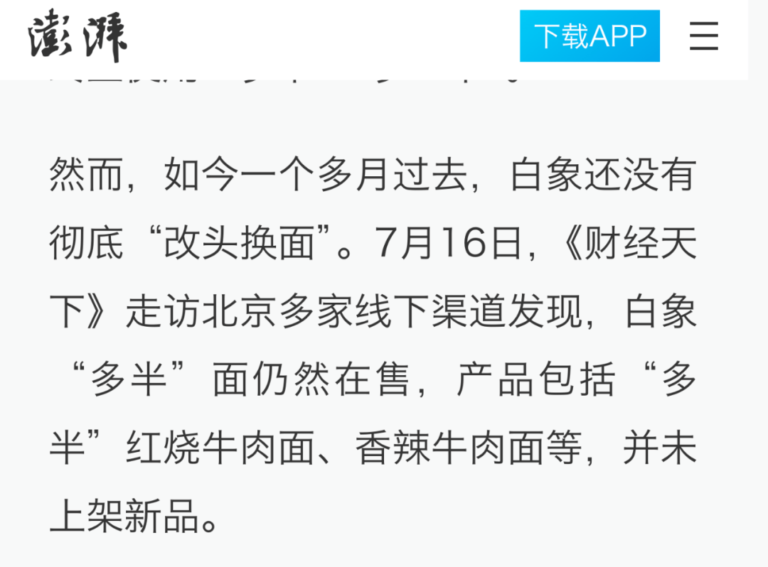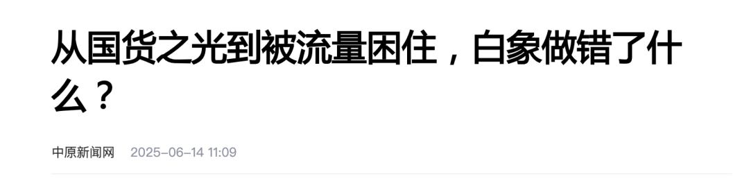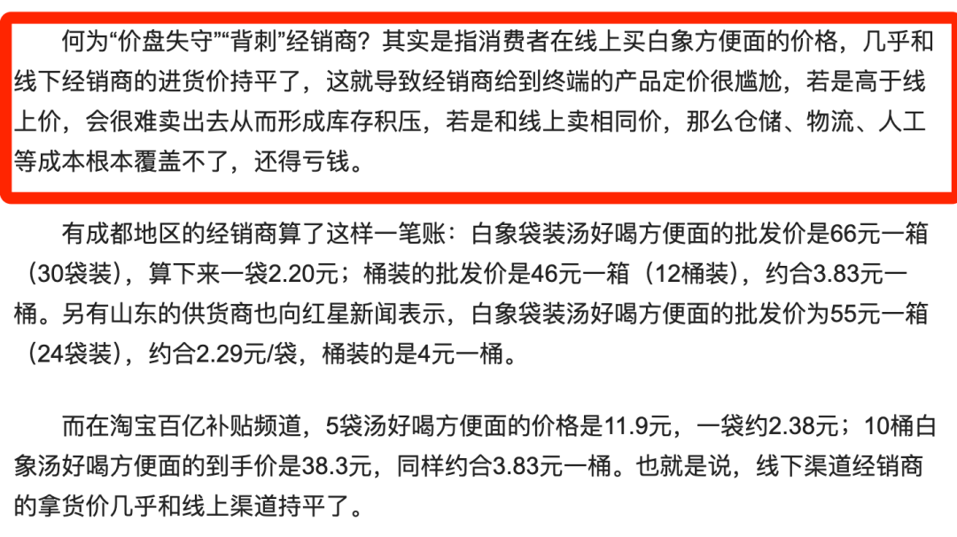 作为河南名企的白象,一些举动已经令本土媒体都看不下去了。今年6月却被河南新闻门户“中原新闻网“以《从国货之光到被流量困住,白象做错了什么?》为题,指出白象食品“价盘失守”,线下经销商遭遇严重“背刺”,利润被严重挤压,甚至需要亏本出货。
