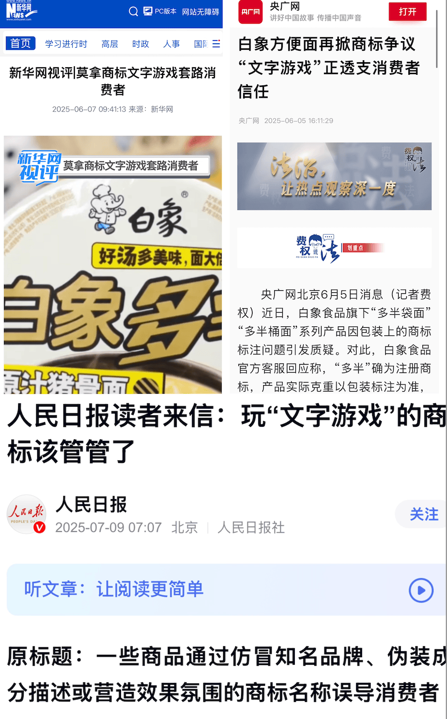 白象恐怕做梦都没想到,自己绞尽脑汁注册的“多半”商标,竟成了全民觉醒的“打脸加速器”。