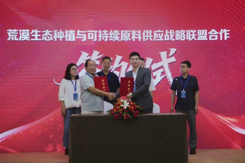 签约仪式:额济纳旗浩林生态种植专业合作社与北京根上营养科技有限公司签署“荒漠生态种植与可持续原料供应战略联盟”合作协议,确保高品质原料的稳定供应与生态种植模式的推广。
