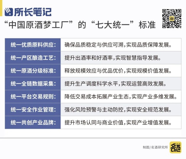 据川酒集团原酒公司董事长代集介绍,“中国原酒梦工厂”还将通过“七大统一”标准,强化川酒原酒品牌塑造。