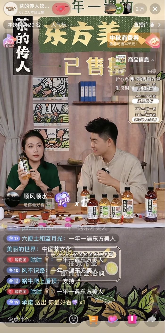 9月16日,茶的传人限量款新品“东方美人”正式开售,迅速在茶饮市场引发不小的轰动:一方面,新品以“特级茶叶入茶”,每瓶都带有唯一“身份ID”,定价高达9.9元/瓶,全面升级了无糖茶的品质天花板;另一方面,在大咖赏鉴团的见证下,限量款“东方美人”正式上线仅83分钟即告售罄,直播间最高观看人数高达10万+!